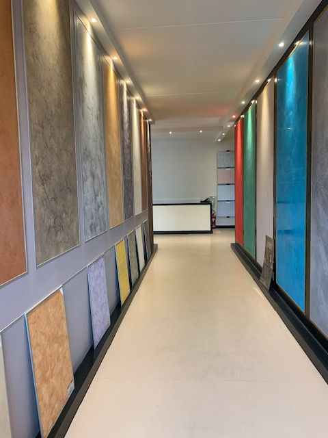 La Ditta dispone di 2 ampi e rinnovati showroom dove potrete apprezzare le raffinatissime resine e le pitture di trend decorative.